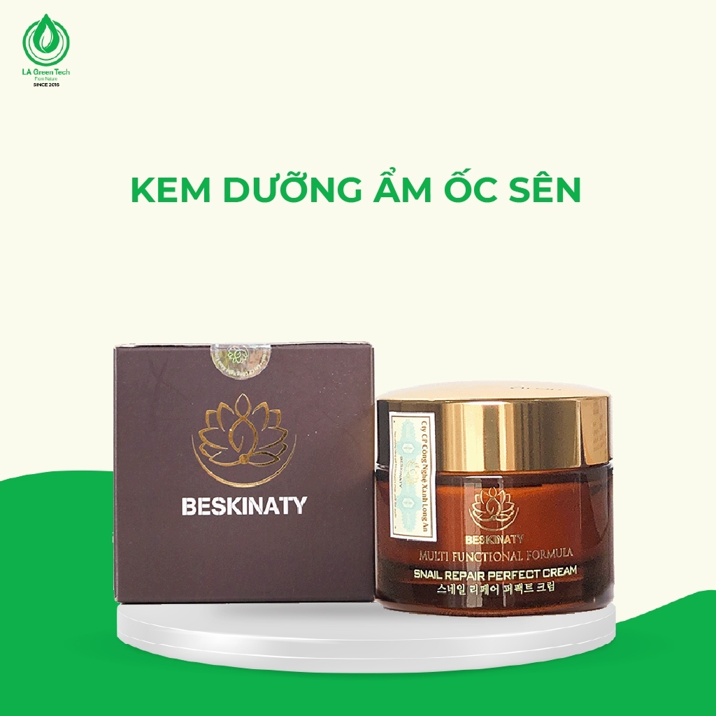 Kem Ốc Sên Beskinaty với hơn 60% chiết xuất chất nhầy ốc sên kết hợp cùng hoạt chất Peptide là lựa chọn lý tưởng giúp nuôi dưỡng làn da trắng sáng, mịn màng và săn chắc theo thời gian. Sản phẩm hỗ trợ cải thiện hiệu quả các vấn đề về da khô, thô ráp, sạm nám, nhiều nếp nhăn, mang lại làn da ẩm mịn, tươi trẻ và tràn đầy sức sống mỗi ngày. Với sự đồng hành của kem dưỡng Beskinaty, bạn có thể an tâm chăm sóc da lâu dài mà không lo cảm giác bí bách hay nhờn rít.