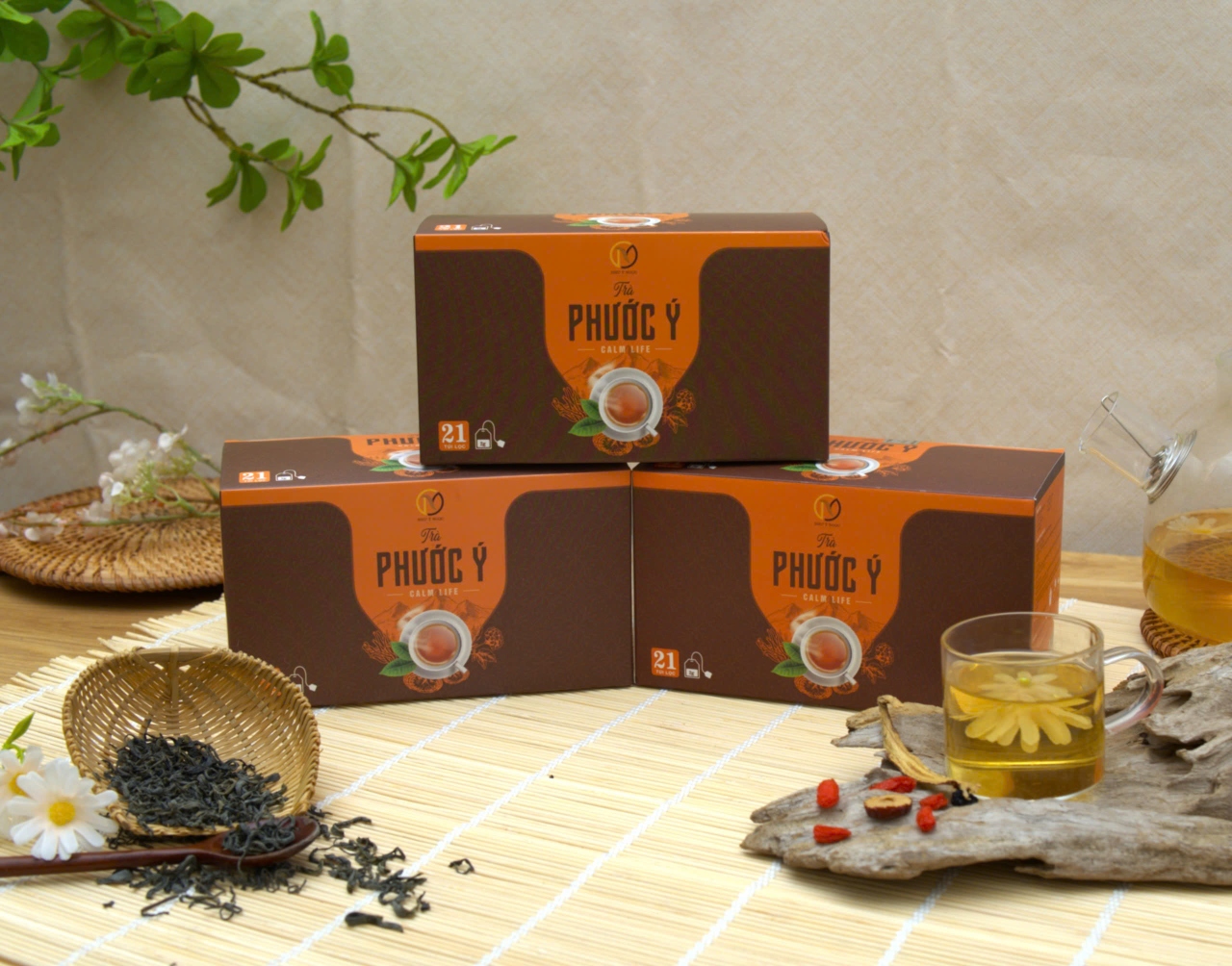 Trà Phước Ý gồm 8 loại thảo mộc quý giúp tăng cường sức đề kháng, nâng cao năng lực, ngủ ngon, mát gan, điều hòa khí huyết