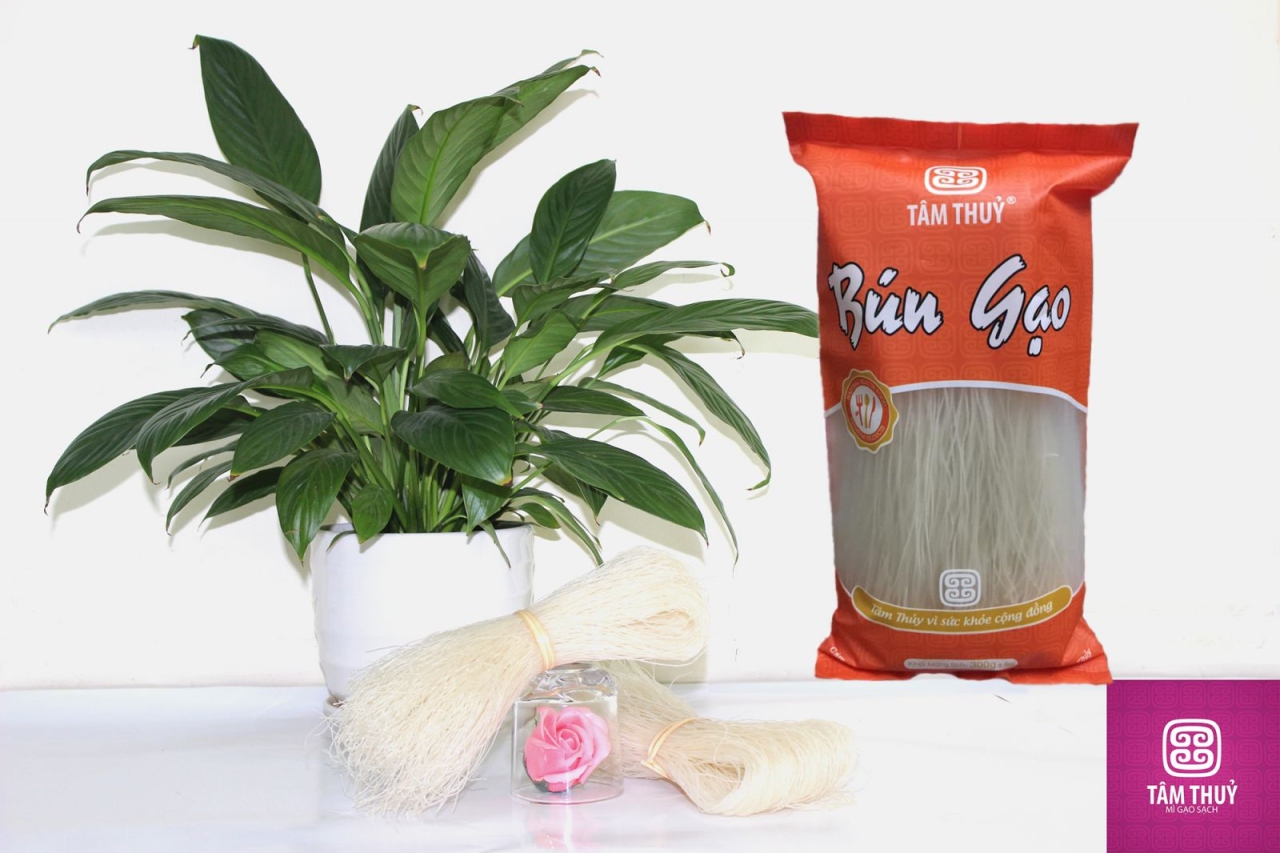 Bún gạo Tâm Thủy được sản xuất 100% từ gạo, không phụ gia, không tẩy trắng mang đến cho người tiêu dùng sản phẩm sạch và an toàn.