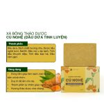 – Xà bông thảo dược cam nghệ: (Dầu dừa, Dịch chiết hương nhu, Dược liệu nghệ tươi, NaOH, Dầu mù u ép lạnh, Tinh dầu cam, Dầu cám gạo).